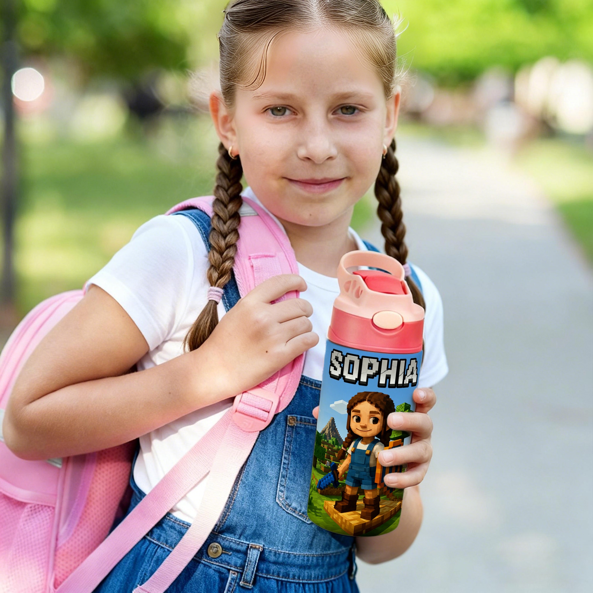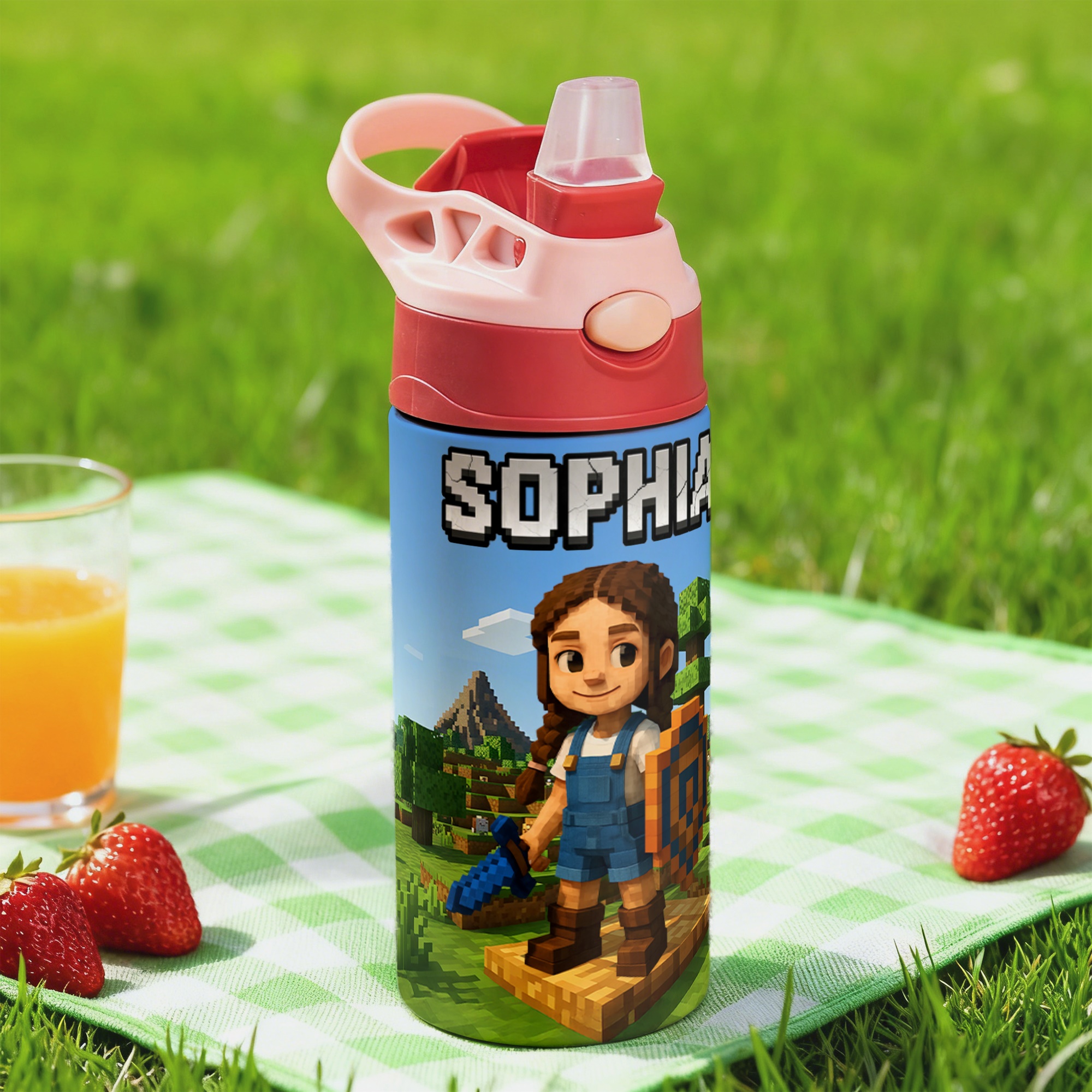 Pixel-Inspired Design - This water bottle features a playful pixel-style look that kids and little gamers love. Its bright pattern and compact 12oz shape fit small hands easily, keeping it stylish and practical for daily use.