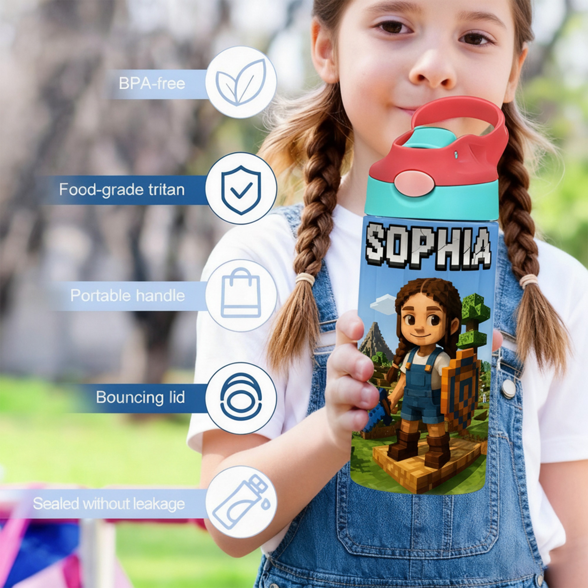 Personalized Name & Photo - Add your child’s name and a favorite photo to turn this bottle into a unique everyday essential. The custom print helps kids spot their own tumbler quickly at school, daycare, or sports practice.